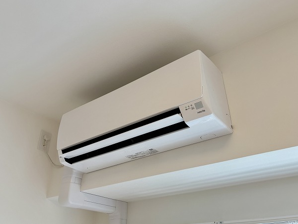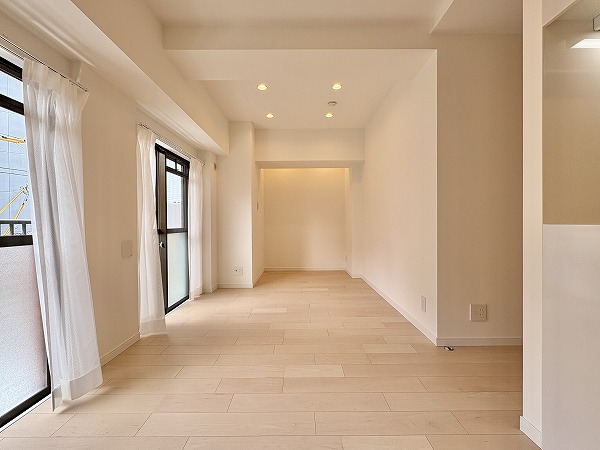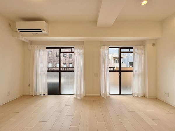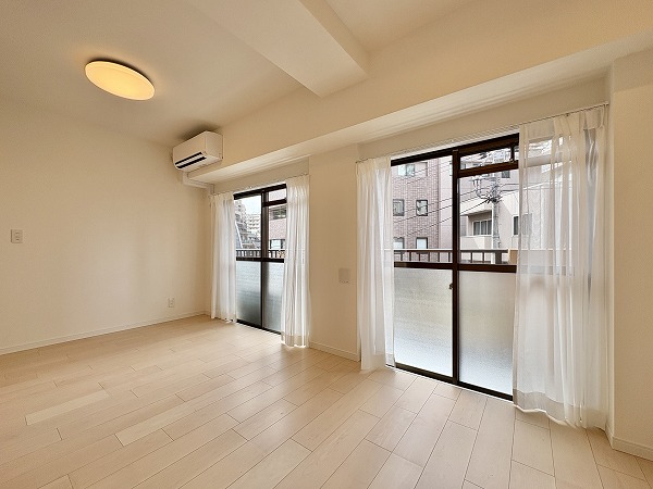 2025年8月に新規内装リノベーションが完了した1LDKのお部屋。どんな色の家具やカーテンも合わせやすいナチュラルテイストな内装デザインが素敵ですね♡エアコン1基が備わっているのも嬉しいポイント。