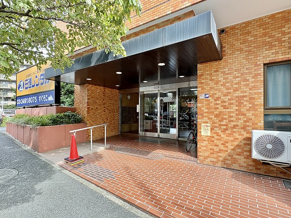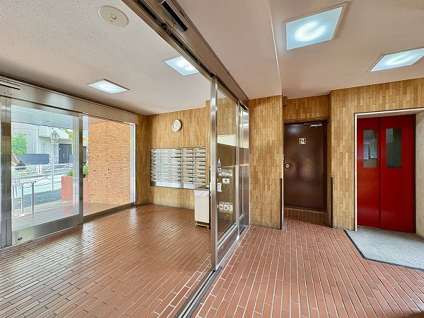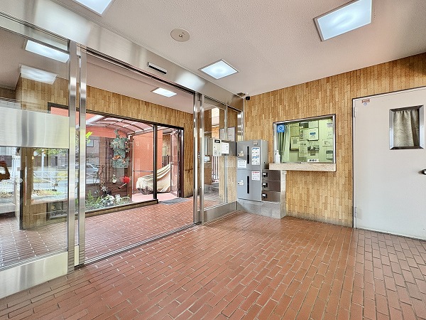 エントランスは広々としていて、手入れも行き届いたマンションです。左手にはスロープも設置されているのでベビーカーや車椅子の方も安心ですね♪