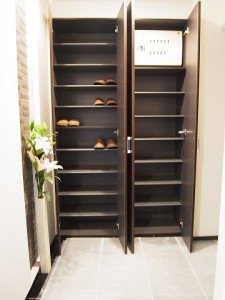 右手にある大きなシューズボックスは、高さがあるので沢山の靴がしまえそうですね。靴の出し入れもラクラク♬