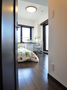 その隣が、1つ目のバルコニーに面した明るいお部屋です。約6.4帖の広さで2面採光なので、個室感がありとっても開放的☆