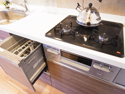 使い勝手の良いキッチンは、たっぷりの収納が自慢の壁付きタイプ♪ 食洗機が付いて、家事の作業がグッと楽になります。