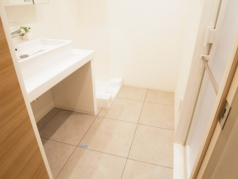 玄関から右へ廊下を進むと、2つの洋室と洗面室があります。始めにご紹介する洗面室は、水廻りがまとまった便利な空間です☆
