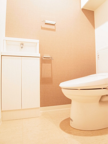 シューズボックスの隣はウォシュレット付のトイレになります。小さな手洗い器は手を洗ったり軽くお掃除をしたい時にもとっても便利ですね。